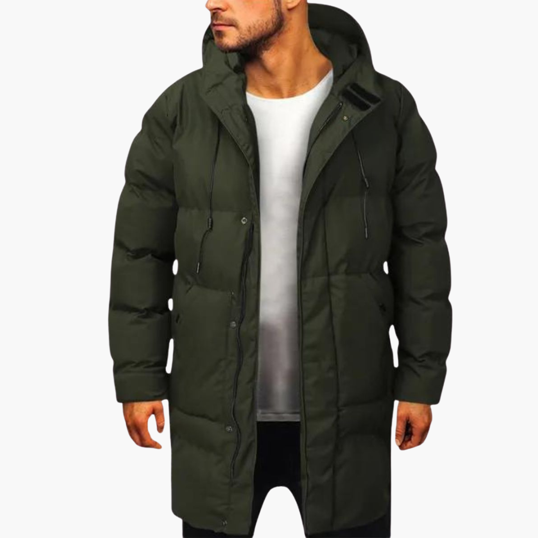 La giacca invernale uomo Altivaro è progettata per offrire calore e comfort durante la stagione fredda. Realizzata con materiale imbottito, questa giacca verde con cappuccio è ideale per affrontare le temperature più basse mantenendo il comfort.