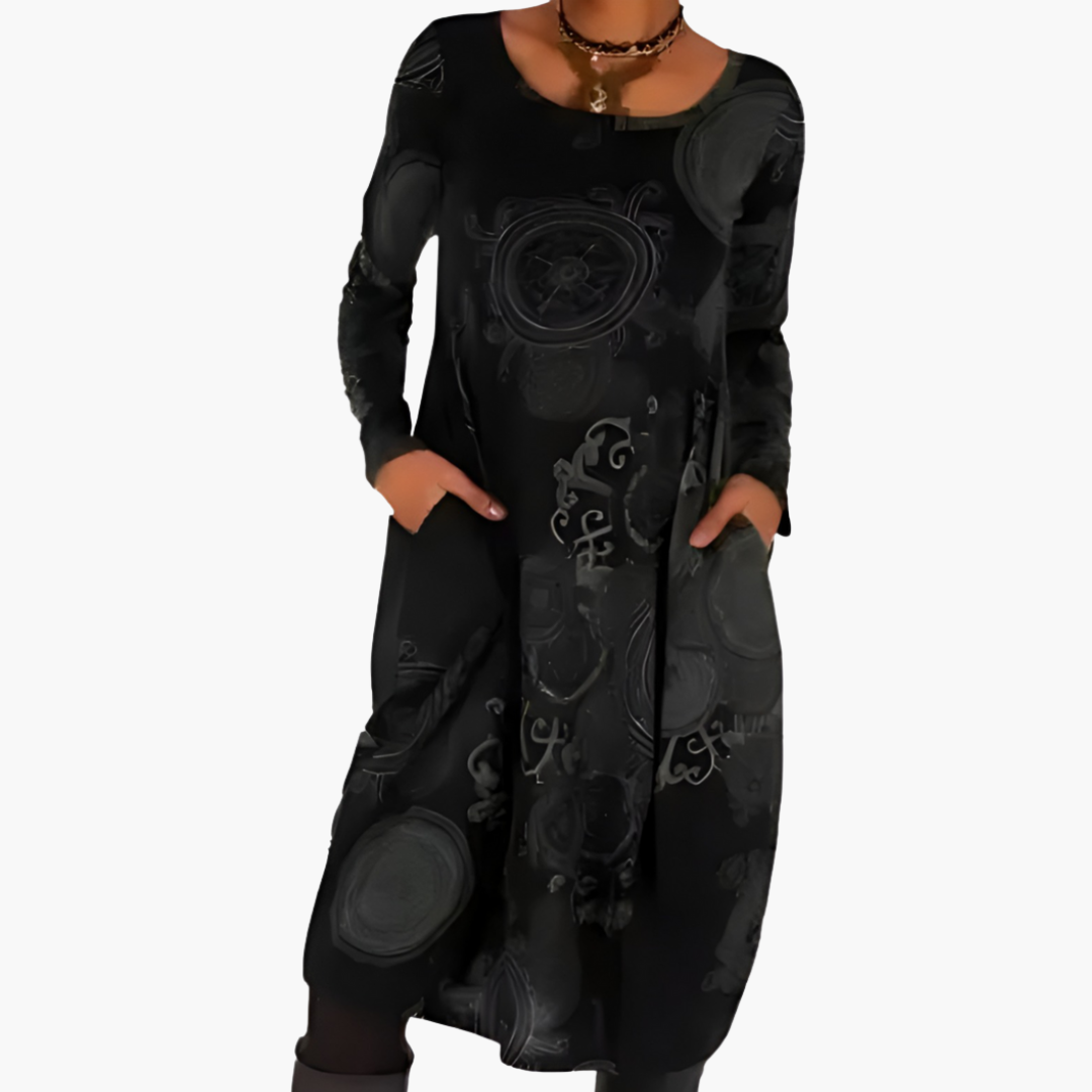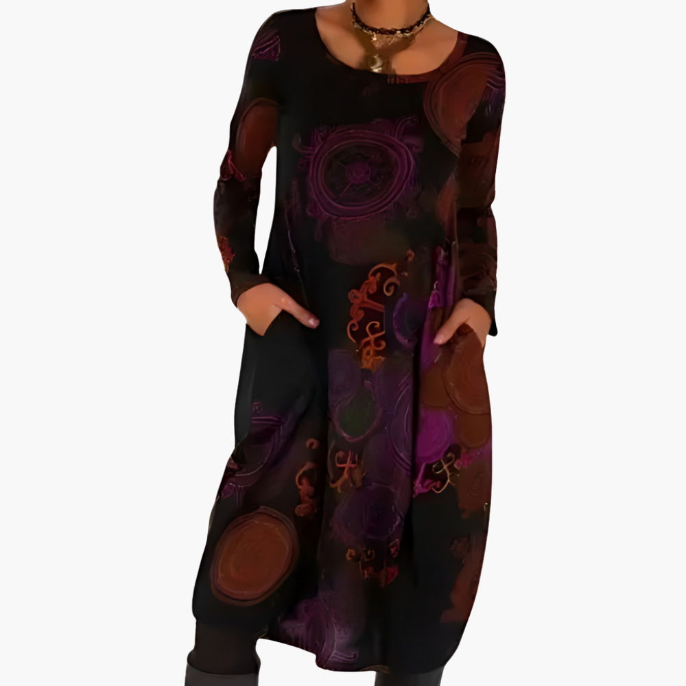 Abito Lungo Maniche Lunghe con Stampa Astratta Donna | Altivaro
