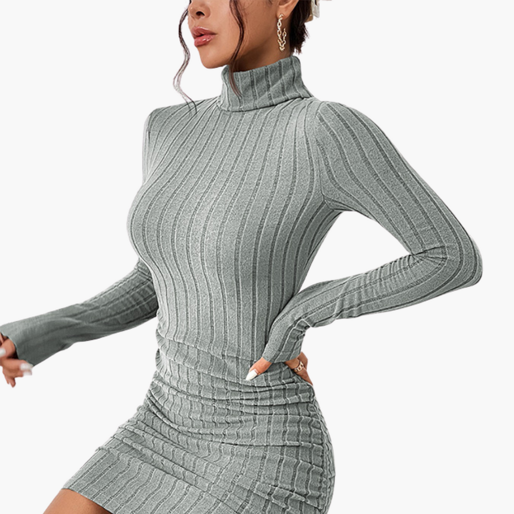 Abito Donna a Maniche Lunghe con Collo Alto e Righe Verticali | Altivaro