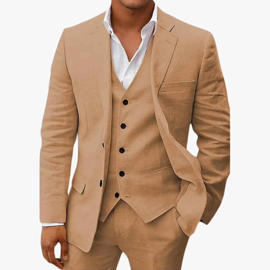 Indossa l'abito Altivaro per un look elegante e confortevole in ogni occasione. Il lino verde di questo completo è perfetto per l'uomo che cerca stile e comfort.