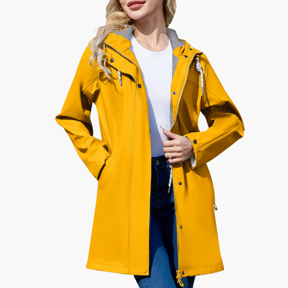 Giacca impermeabile con cappuccio regolabile e tasche per donna | Altivaro