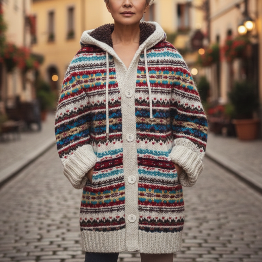 Cardigan lungo donna Altivaro progettato per donne adulte, adatto all’uso quotidiano durante la stagione fredda. Il capo è realizzato in maglia di poliestere e presenta una struttura funzionale pensata per garantire comfort e praticità. Il motivo jacquard multicolore conferisce un aspetto distintivo, mantenendo uno stile adatto a contesti casual e informali.
