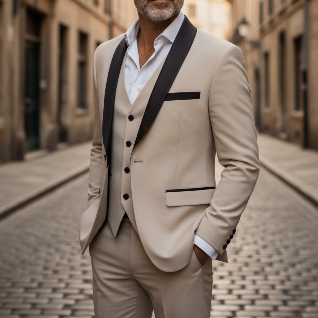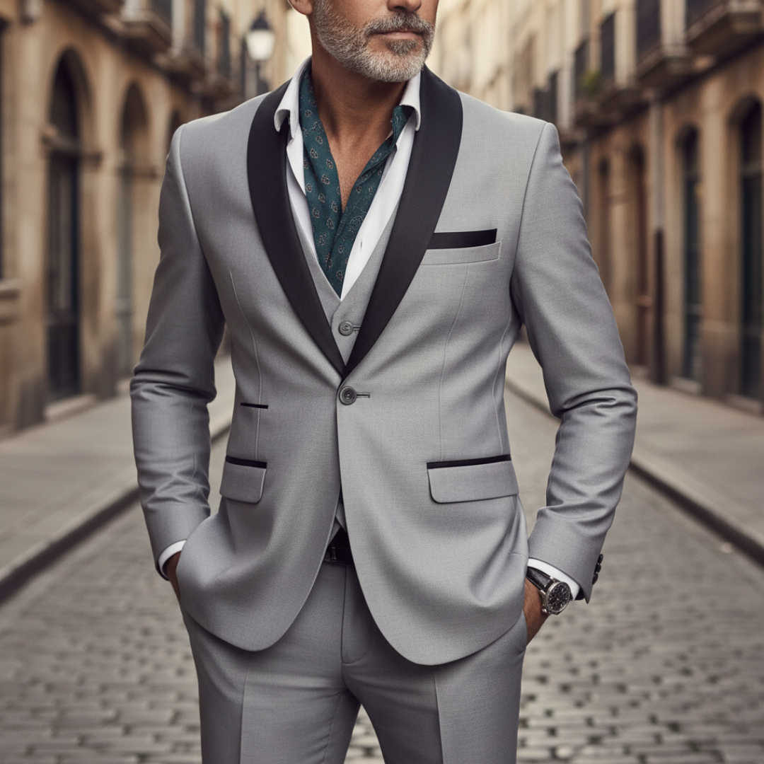 • Completo a tre pezzi con blazer, gilet e pantaloni coordinati