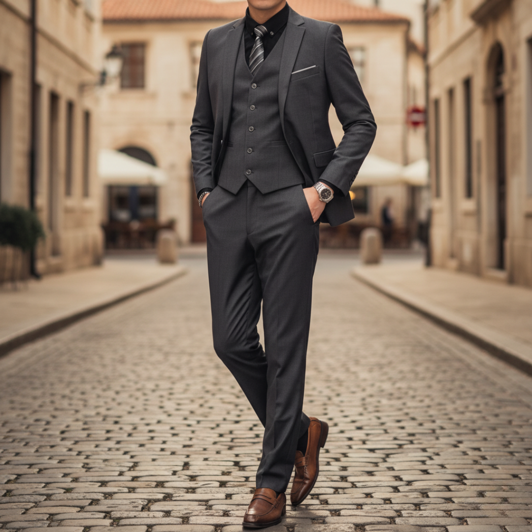 Il completo Altivaro è un'aggiunta elegante al guardaroba maschile, combinando stile e praticità in un design semplice e raffinato.