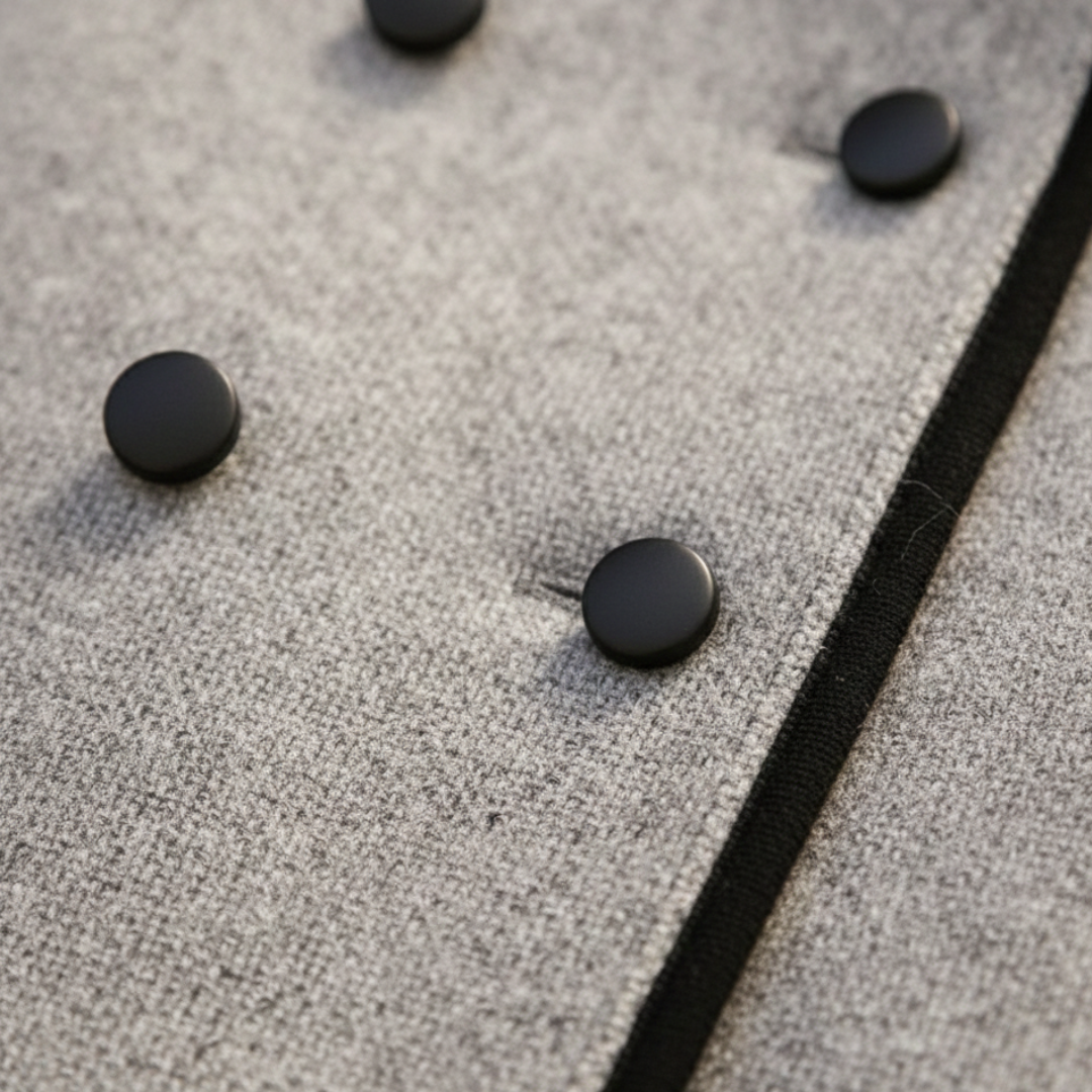 Dieser Mantel für erwachsene Frauen zeichnet sich durch ein doppelreihiges Design mit vorderer Knopfleiste und eine reguläre Passform aus. Die Länge und die langen Ärmel machen ihn geeignet, über Pullovern, Rollkragen oder Kleidern getragen zu werden und bieten eine praktische Lösung für die Alltagskleidung.