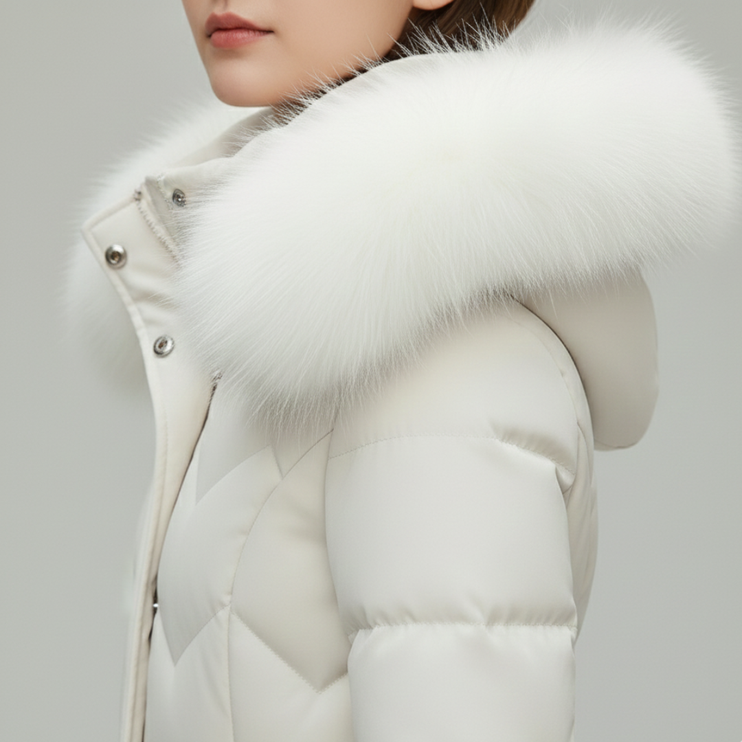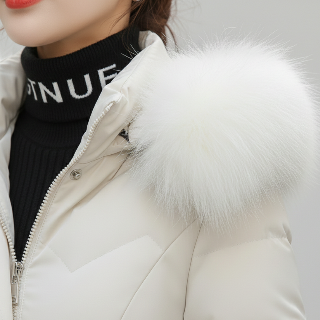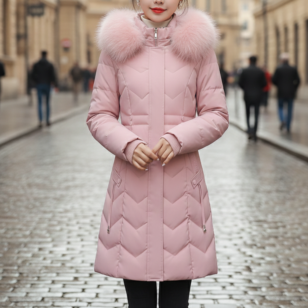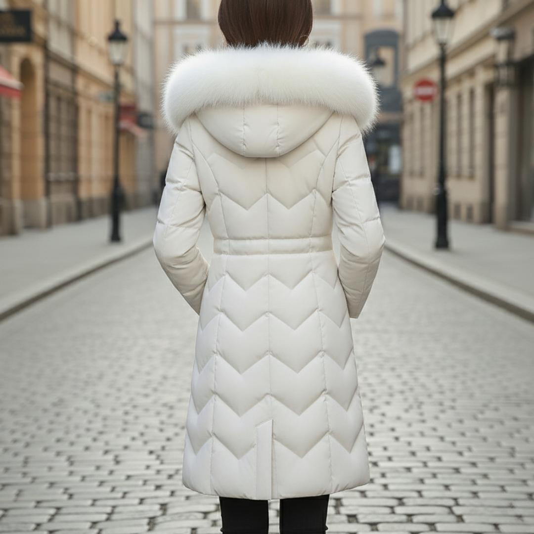 Damen langer Daunenmantel mit Kapuze und Kunstpelz | Altivaro