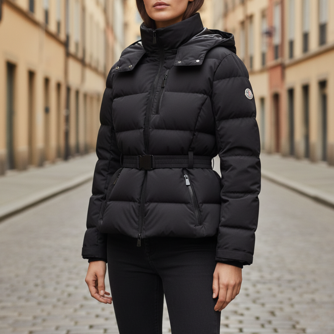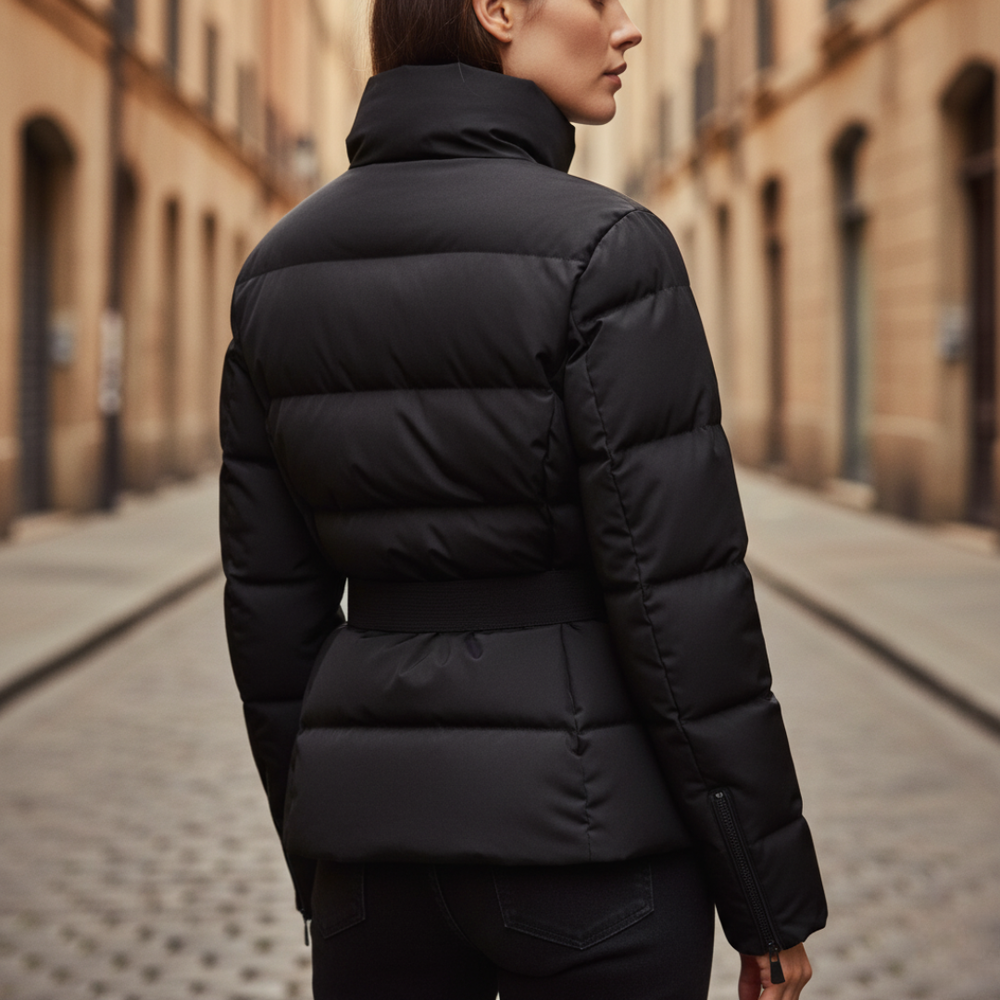 Damen Daunenjacke Schwarz mit Gürtel Winter | Altivaro