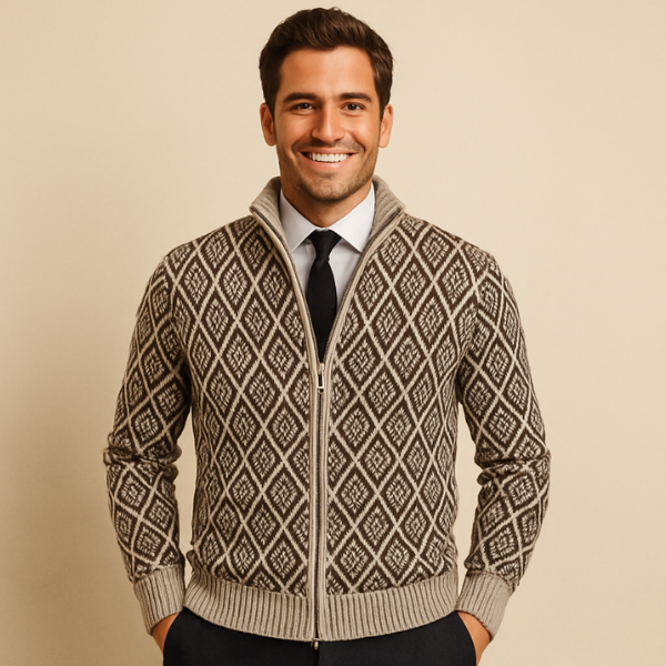 Herren Strickjacke mit Reißverschluss Diamantmuster | Altivaro