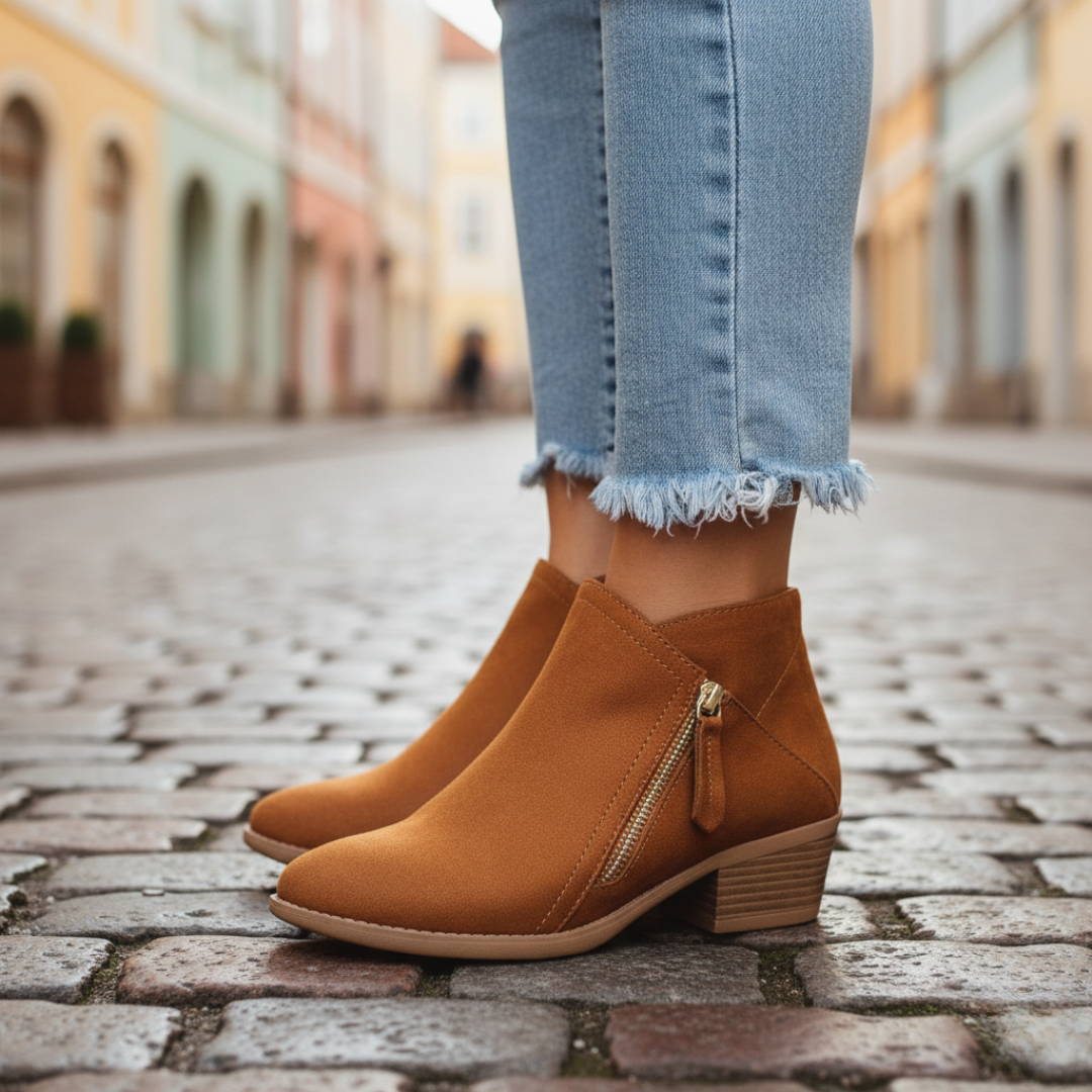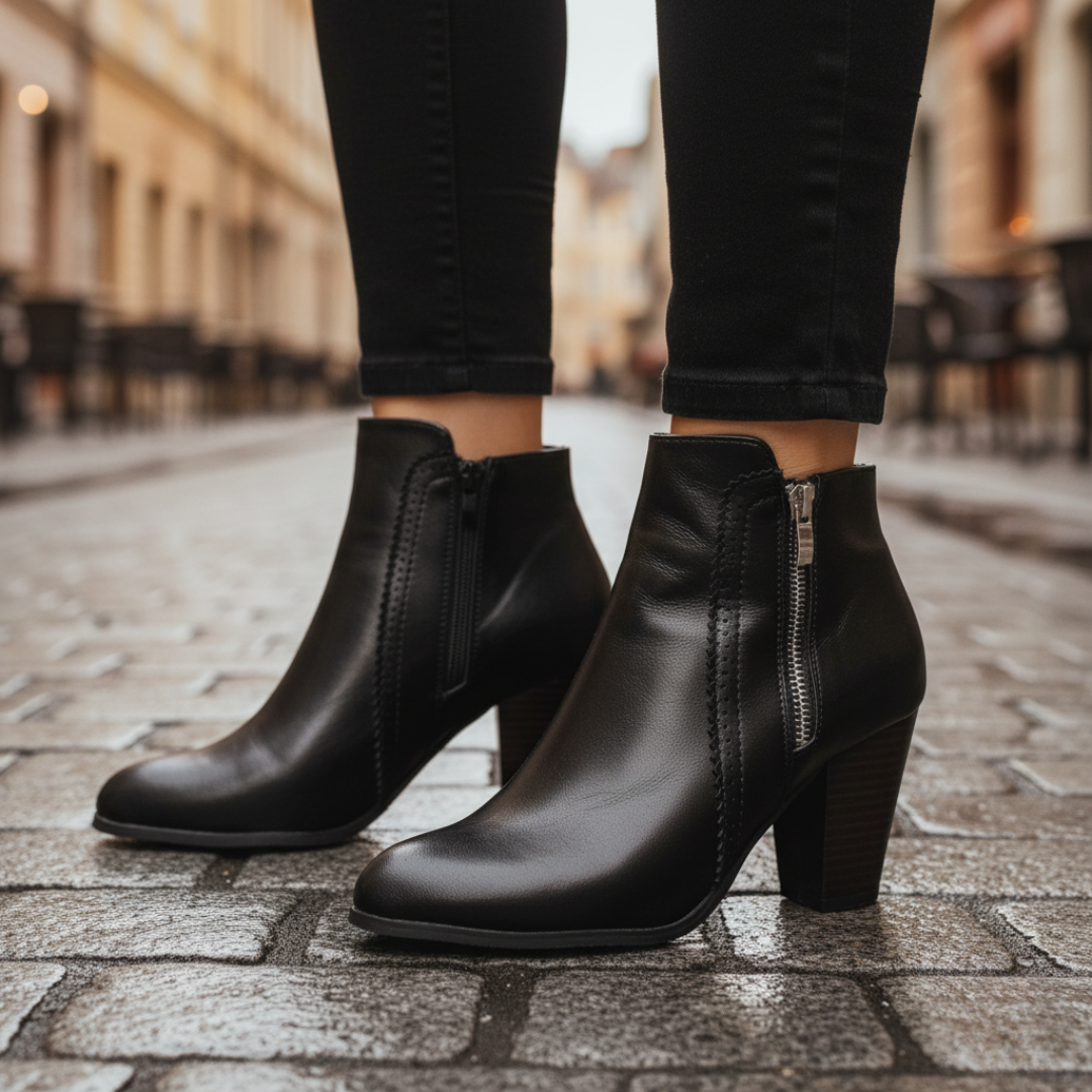 Orthopädische Damenstiefeletten echtes Leder Absatz Reißverschluss | Altivaro