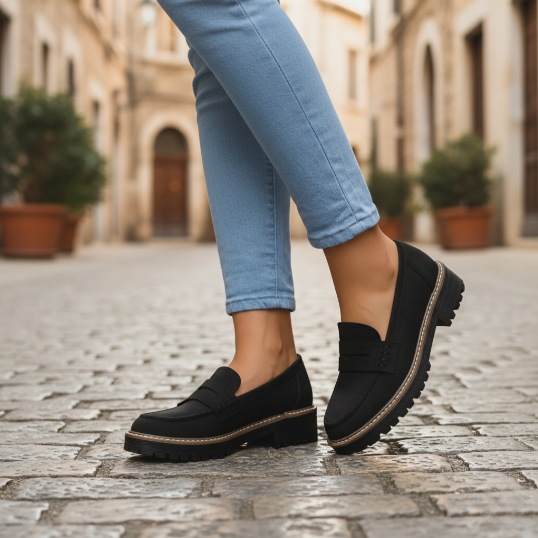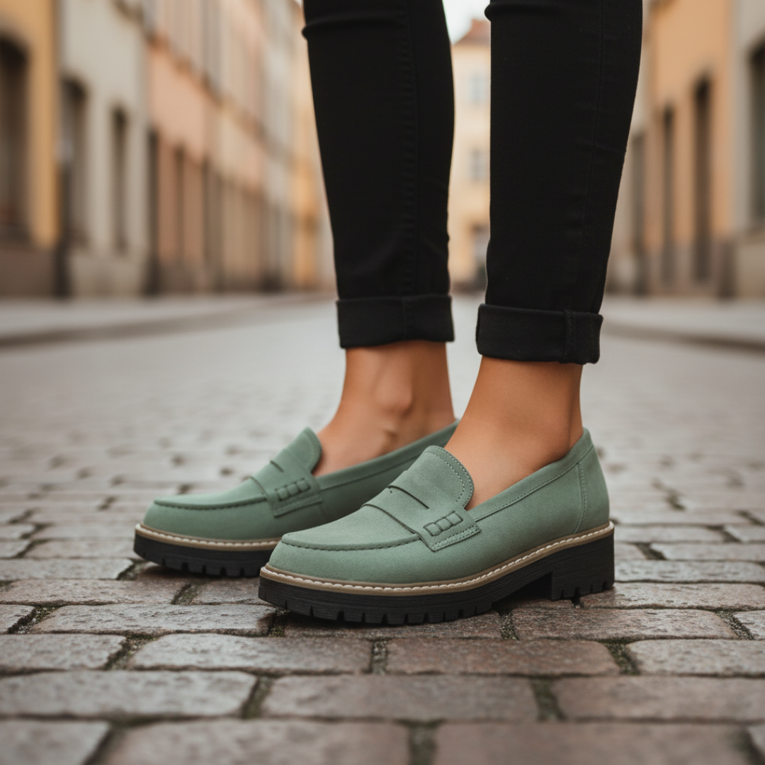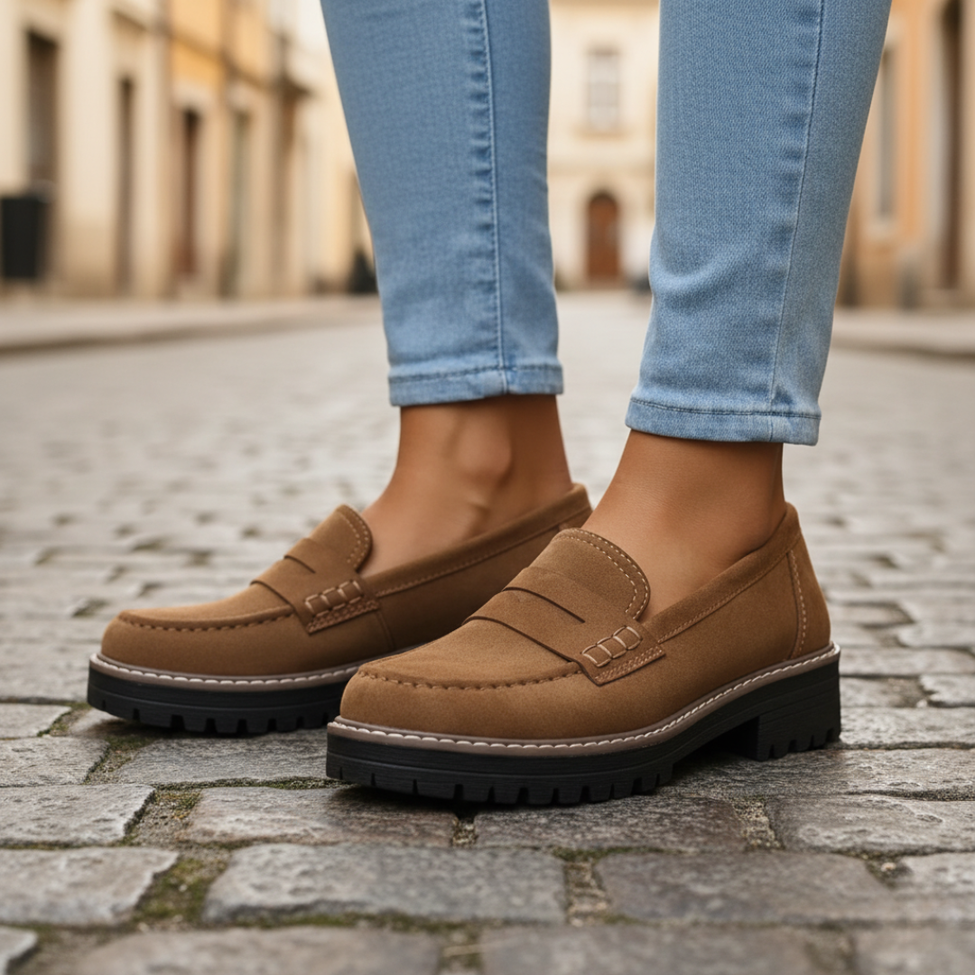 Der orthopädische Damenschuh aus Wildleder von Altivaro wurde entwickelt, um Komfort und Stil zu vereinen. Hergestellt aus weichem Wildleder, bietet dieser Mokassin optimalen Halt den ganzen Tag über dank seiner orthopädischen Sohle, die ein bequemes Gehen gewährleistet. Für verschiedene Anlässe geeignet, ist er ideal sowohl für die Arbeit als auch für die Freizeit.