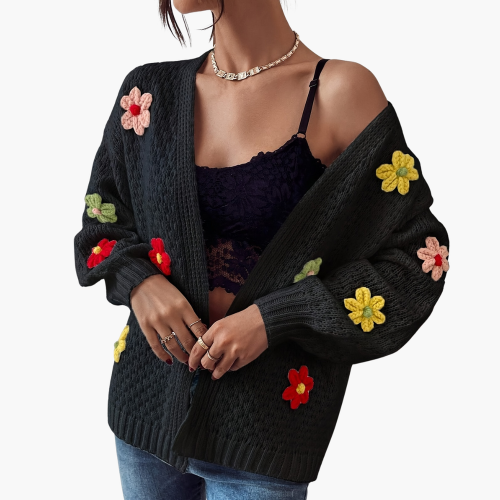 The Altivaro floral pattern cardigan is a modern and versatile piece, perfect for adding a touch of color and style to your wardrobe. Made from soft knit, this cardigan is ideal for cooler days, combining comfort and refined design. The floral details and elegant buttons make it easy to pair with jeans, skirts, or pants for a casual or more sophisticated look.