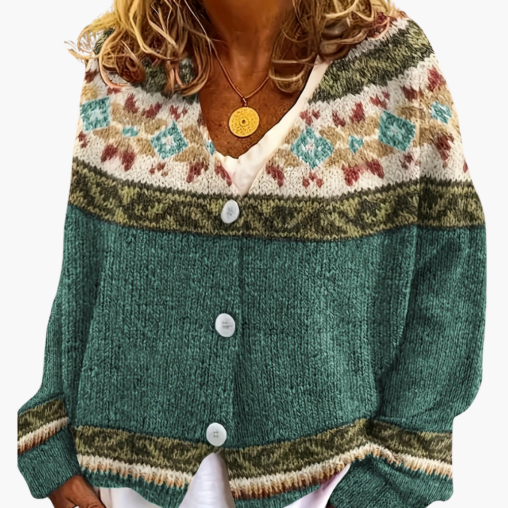 Women's Cardigan with Braided and Multicolor Pattern | Altivaro