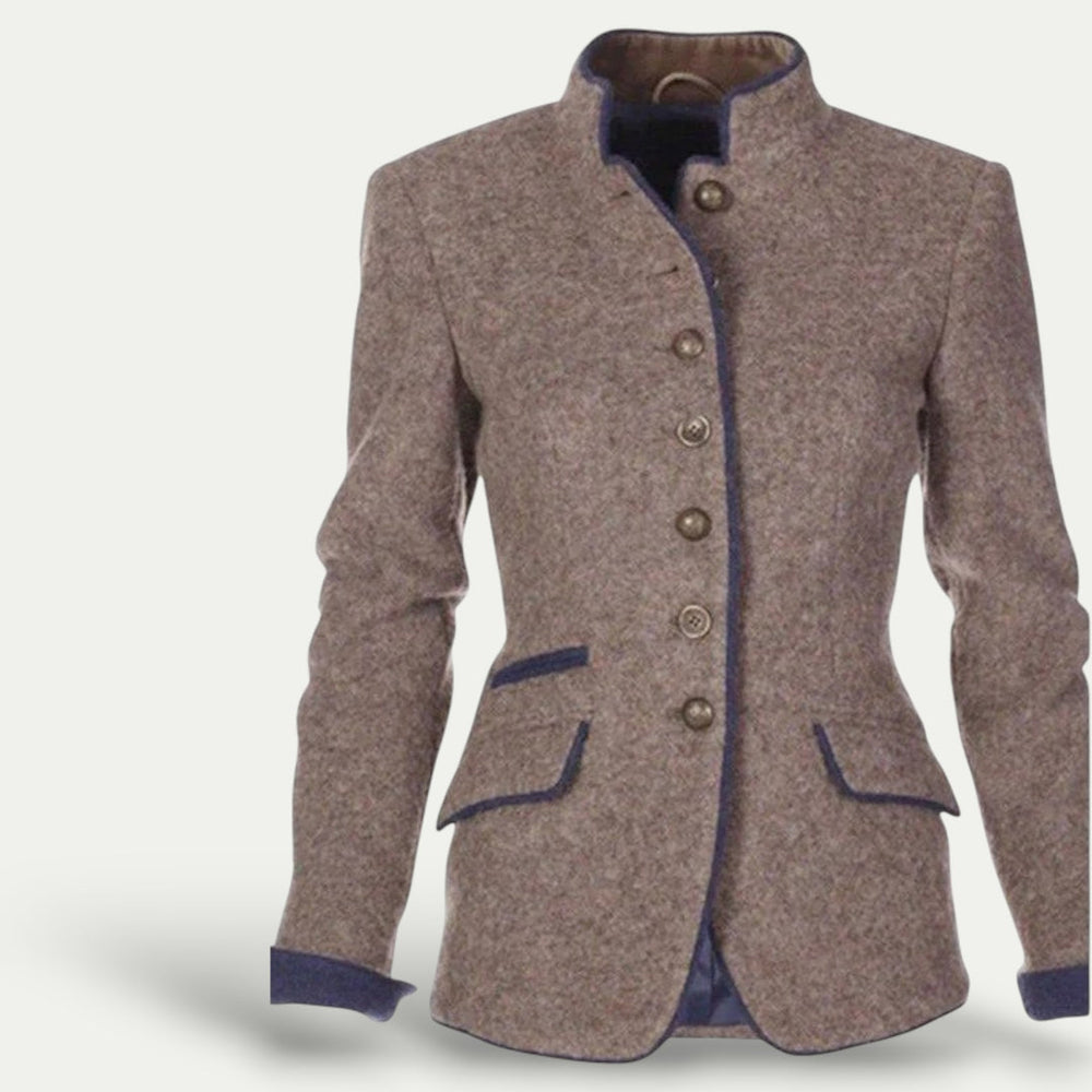 Women's Brown Tweed Jacket with High Collar | Altivaro
