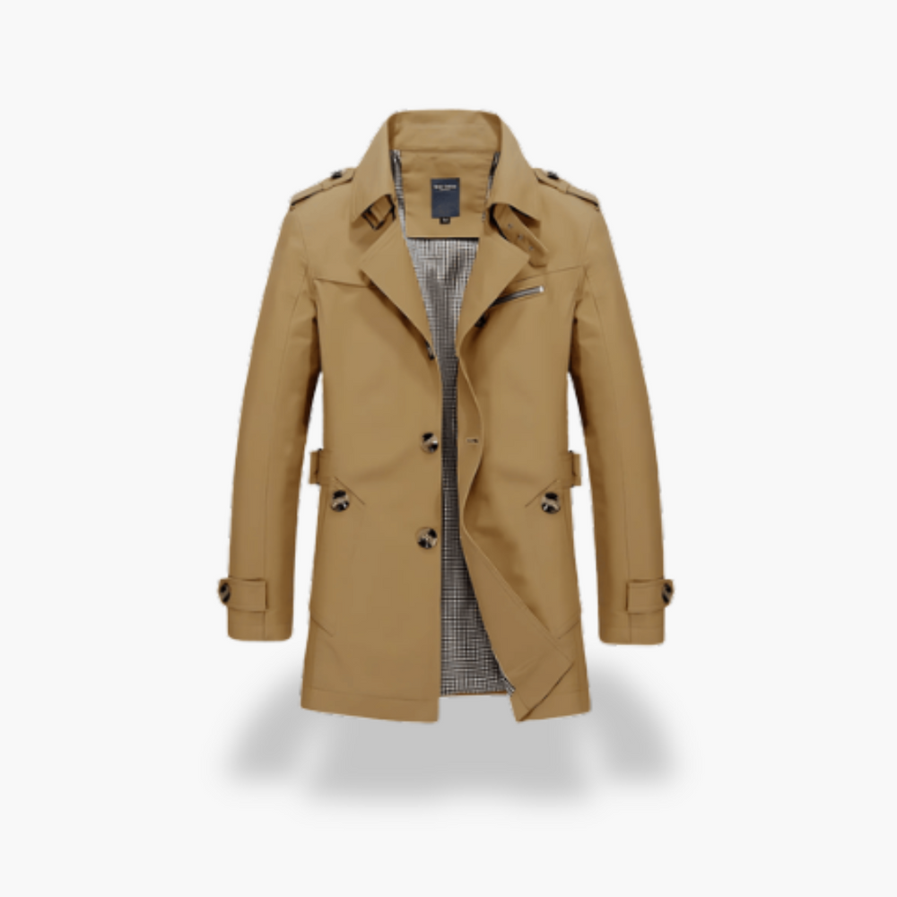 Men's Trench Coat with High Collar and Buttons | Altivaro
