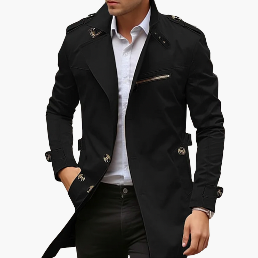 This trench coat is an essential piece of the men's wardrobe, suitable for multiple occasions and easily paired with shirts, dress pants, or jeans. A practical and elegant option for those seeking a sober and timeless style.