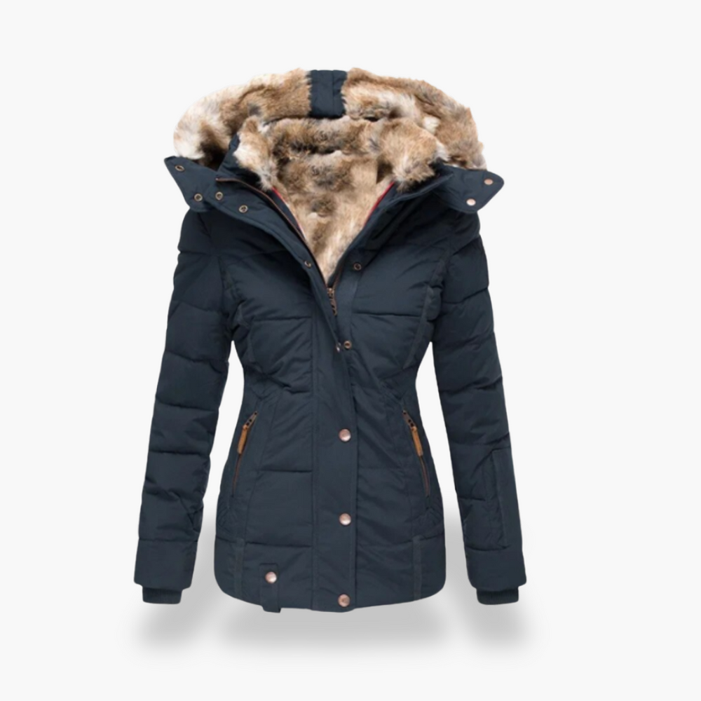 Women's Puffer Jacket with Hood and Synthetic Fur Lining | Altivaro