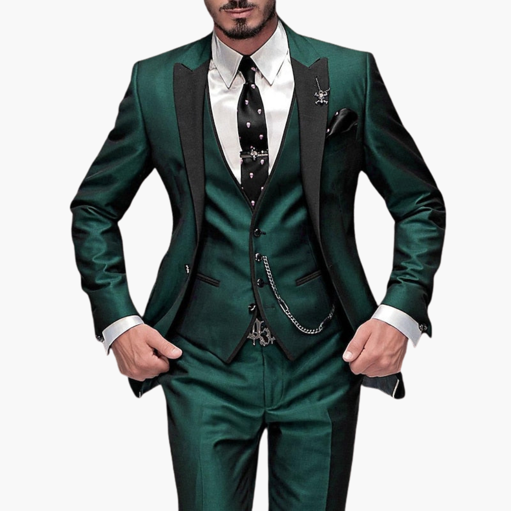 The Altivaro men's suit offers an elegant and modern design, perfect for formal events and special evenings. Made with soft and durable fabrics, this suit stands out for its originality and gothic style with a decorative chain.