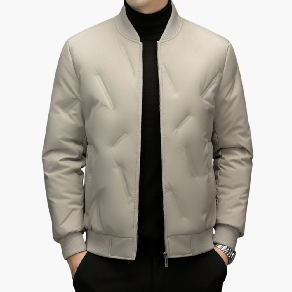 The Altivaro men's padded bomber jacket is a winter garment designed to offer thermal comfort and practicality during the cold season. Made of beige synthetic material, it is suitable for adult men seeking a casual and functional look.