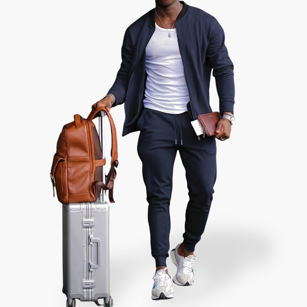The Altivaro men's tracksuit is designed to offer comfort and style at any time of the day. Made from soft stretch cotton fabric, it is perfect for leisure, travel, light sports, or an urban casual look. The set includes a zip-up sweatshirt and jogger pants with adjustable drawstring, ensuring practicality and freedom of movement.