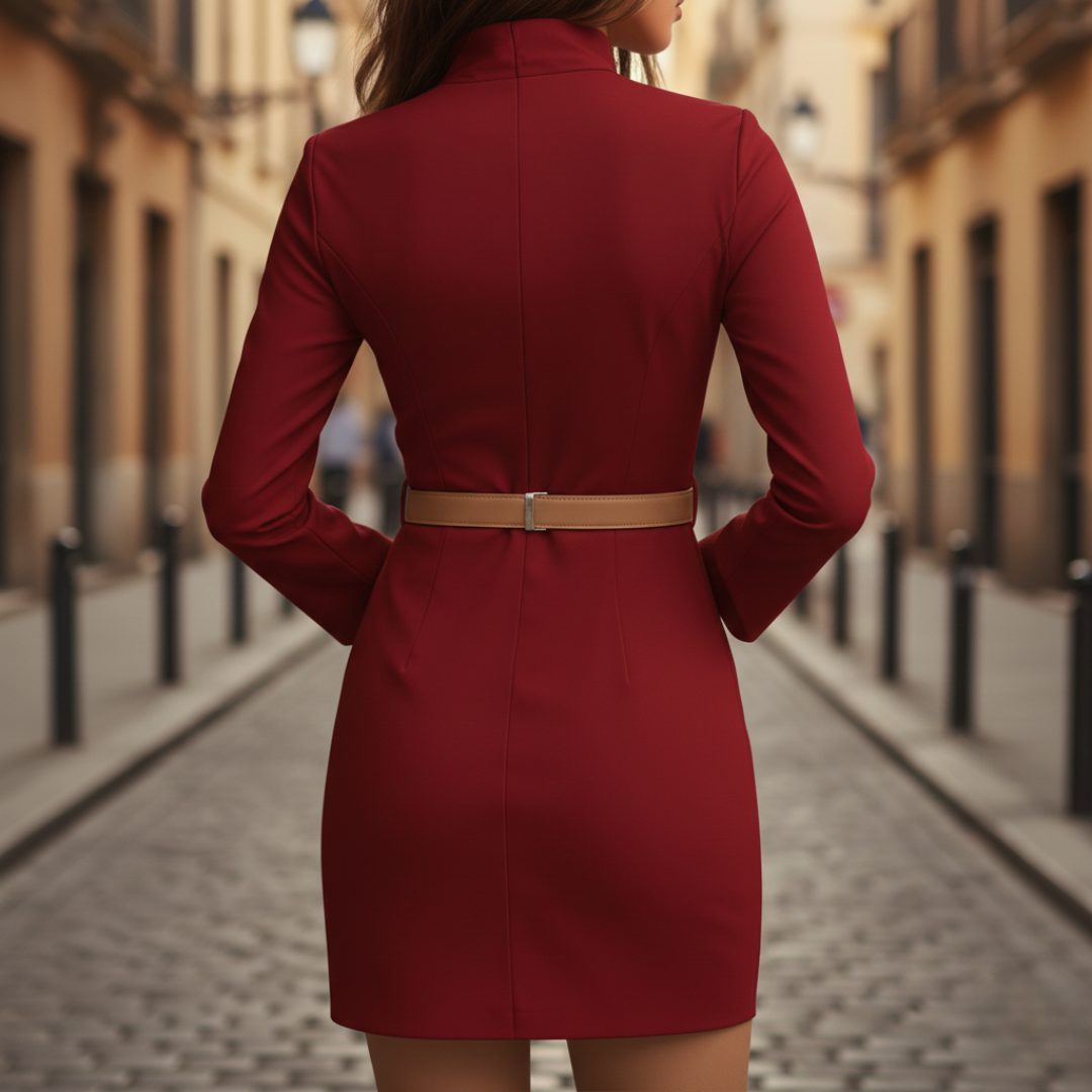 A women's Altivaro dress suitable for those looking for a women's fitted dress, long-sleeve dress, women's turtleneck dress, suitable for work, events, or daily use with a sober and defined style.