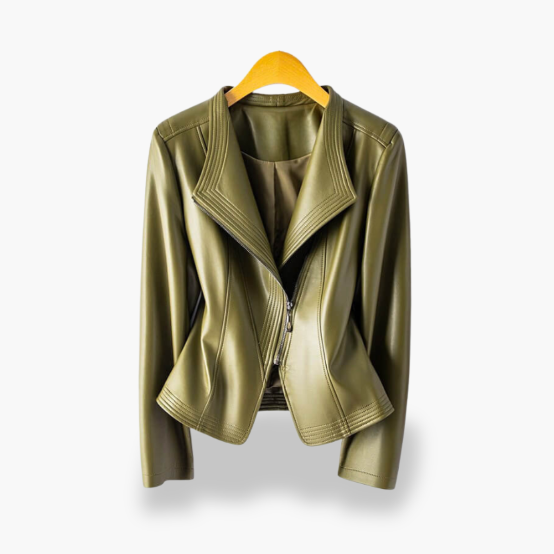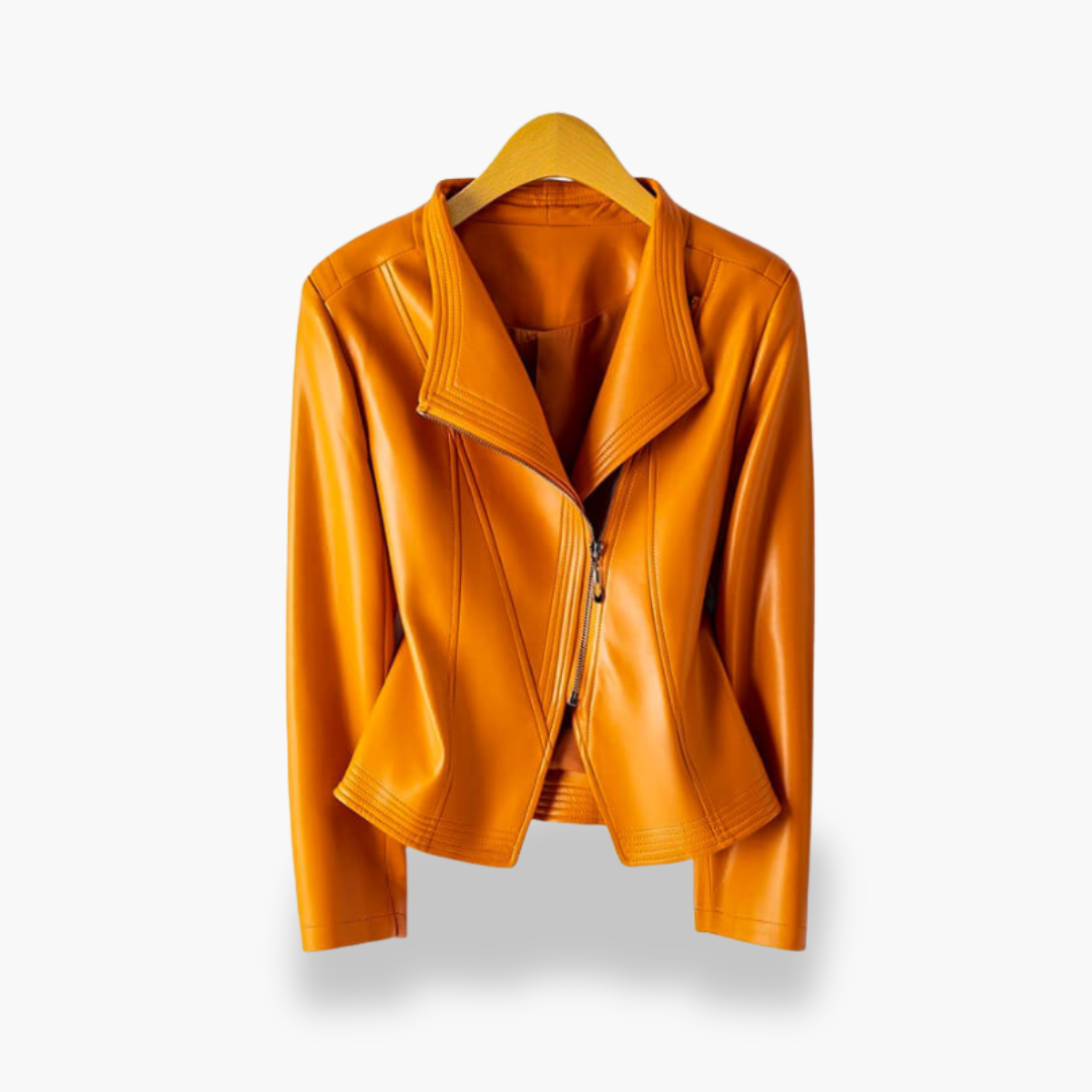 The Altivaro women's biker jacket is a modern piece, made of red faux leather, ideal for adding a touch of style to your wardrobe. With a zip closure and biker cut, this jacket is perfect for creating a distinctive look, suitable for various occasions.