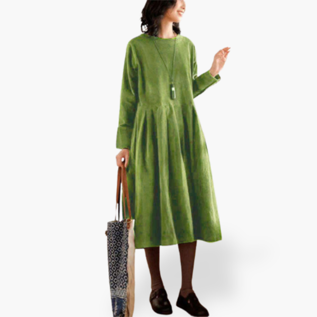 L'abito Altivaro è un capo elegante e versatile pensato per la donna moderna. Realizzato in tessuto morbido e confortevole, questo abito a maniche lunghe con pieghe è ideale per occasioni casual o semi-formali. Il design semplice e raffinato lo rende facile da abbinare con scarpe eleganti o casual, mentre il colore verde, blu, e marrone vivace aggiunge un tocco di freschezza al tuo guardaroba. Perfetto per una giornata di lavoro o per un'uscita informale, questo abito è adatto per ogni stagione.