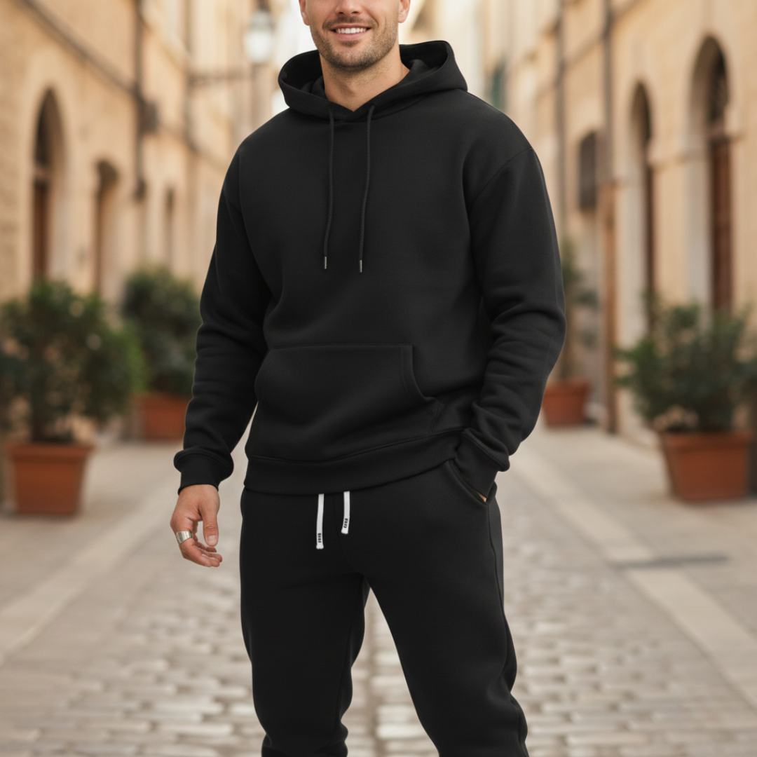 La tuta felpata uomo Altivaro in color cammello è pensata per offrire comfort quotidiano e uno stile pulito adatto a diverse occasioni. Realizzata in cotone con interno felpato, è ideale per l’uso durante le stagioni più fresche. Il design coordinato con felpa con cappuccio e pantaloni jogging crea un look moderno e funzionale, perfetto per il tempo libero, i viaggi o l’uso domestico.