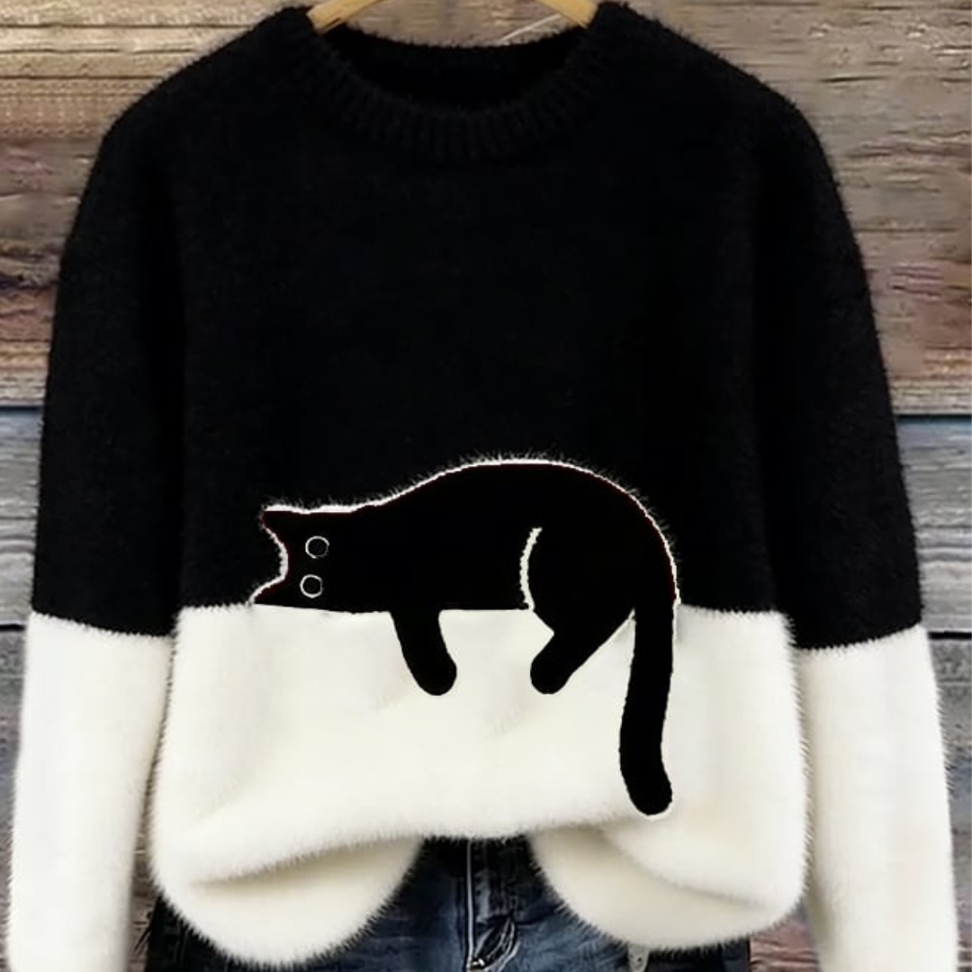 Maglione Donna Effetto Peluche con Motivo Gatto Girocollo | Altivaro